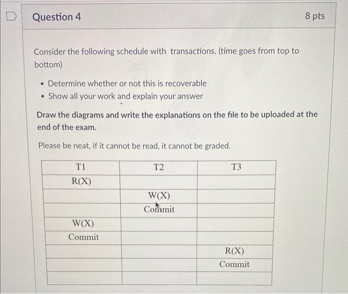 Solved Consider The Following Schedule With Transactions Chegg Com