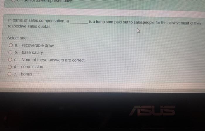In Terms Of Sales Compensation A Is A Lump Sum Paid Chegg Com
